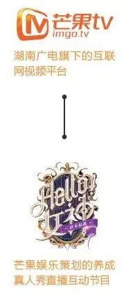 比如,针对当下最火爆的直播,芒果娱乐策划了一档《Hello女神》的养成真人秀直播互动节目。