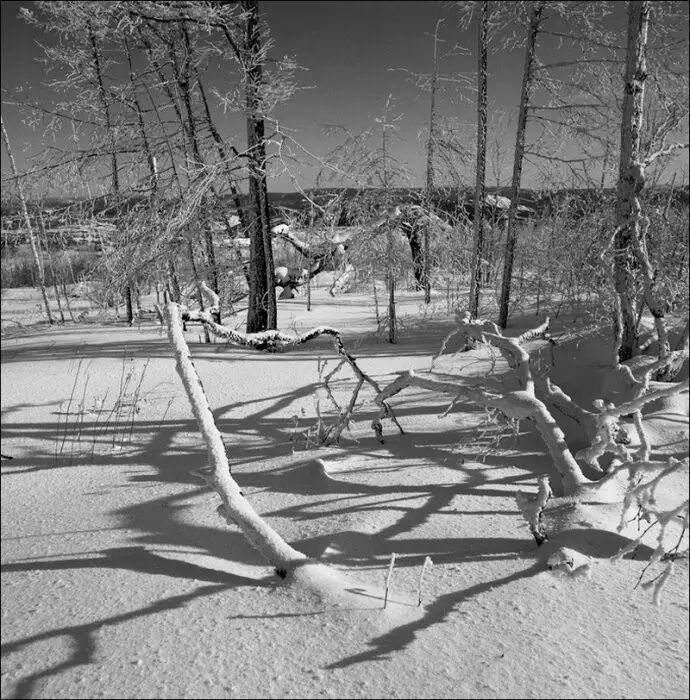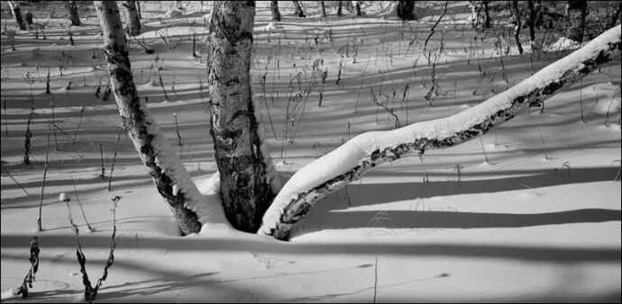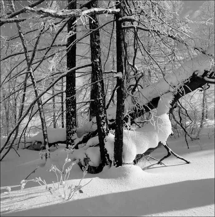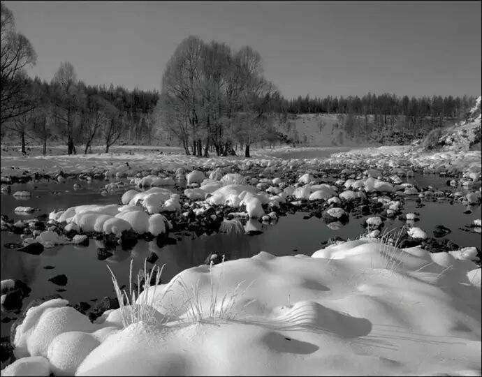 作为北方的摄影人,我对雪有一种特殊的偏爱,欣赏雪的美丽,更热爱它的品格,也一直在探索着雪的更好的摄影表现方式。我以为北方的冬日雪景天生就是黑白调的,纯粹而隽永,任何色彩似乎都是多余的,这也是我一直使用黑白胶片拍雪景而很少使用彩色胶片或数码相机的原因。黑白摄影并不是适合所有题材,但它在灰色调上的丰富层次尤其适合表现景物的质感,而雪正是以质感美最为突出的拍摄对象,因此非常适合用传统的黑白银盐影像来表现。
