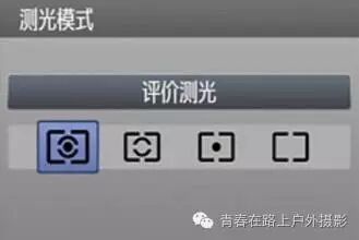 上图中红色的部分就是测光模式,按住这个按钮,通过拨动主拨盘,会发现下图4种模式。