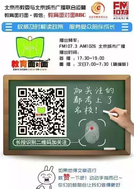 更多一手信息,还请收听FM1073北京城市广播每天17:30的《教育面对面》!