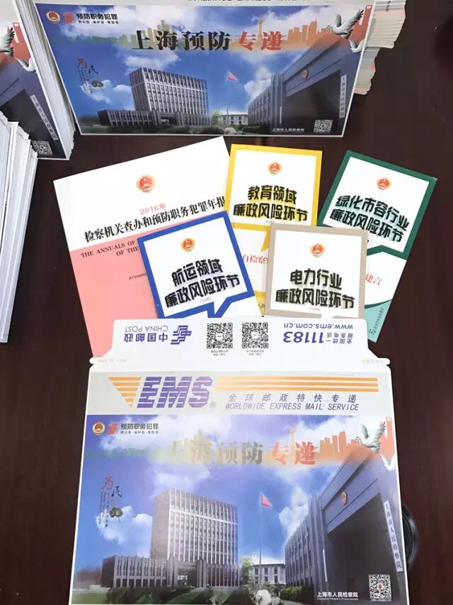 上海预防职务犯罪公益宣传又增添新的渠道,首批200余份带有“上海预防专递”廉政公益广告的邮政速递EMS封套的信函,,“上海预防专递”廉政公益广告EMS封套正式投入使用。全市检察机关职务犯罪预防部门对外寄送的资料、函件,将统一使用“上海预防专递”专用封套递送,不仅确保快件安全快速送达,而且扩大预防工作理念和预防文化的传播范围。
