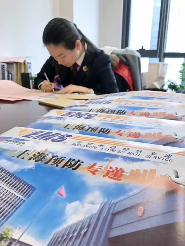 邮政快递人员到检察机关收寄上海预防专递”EMS快递信函。郑文婕\摄