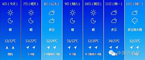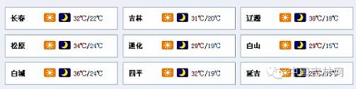 今天白天吉林省中西部地区最高气温为32~36度,其它大部分地区28~31度;今天夜间吉林省东部地区最低气温为15度左右,其它大部分地区19~24度。