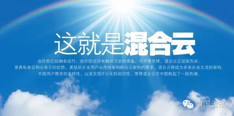 也许你已经胸有成竹,也许你还没有做好万全的准备,混合云正迎面而来。兼具私有云和公有云的优势,更贴近企业用户从传统架构转向云架构的需求,混合云将成为未来企业主流的架构。中国用户需求的多样性,以及实现IT云化的迫切性,使得混合云在中国掀起了一股热潮。