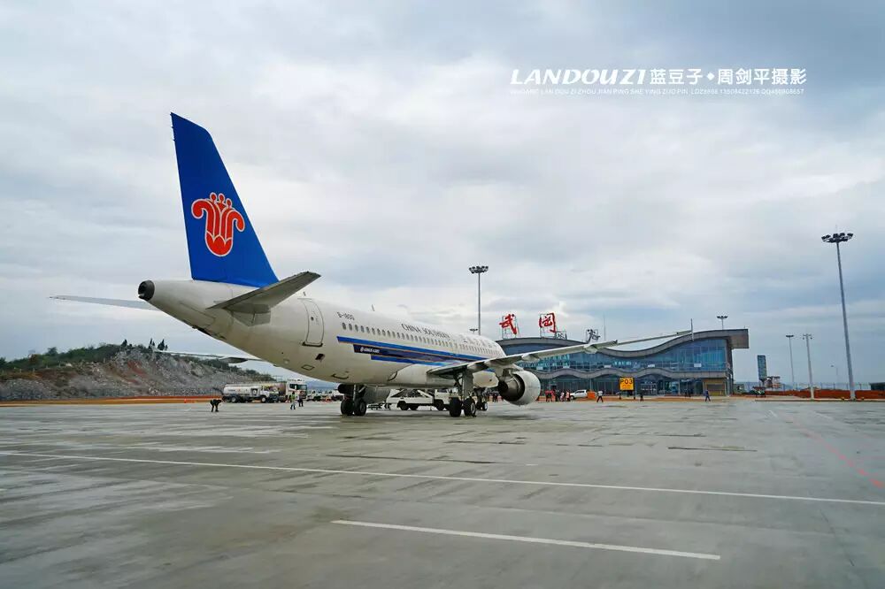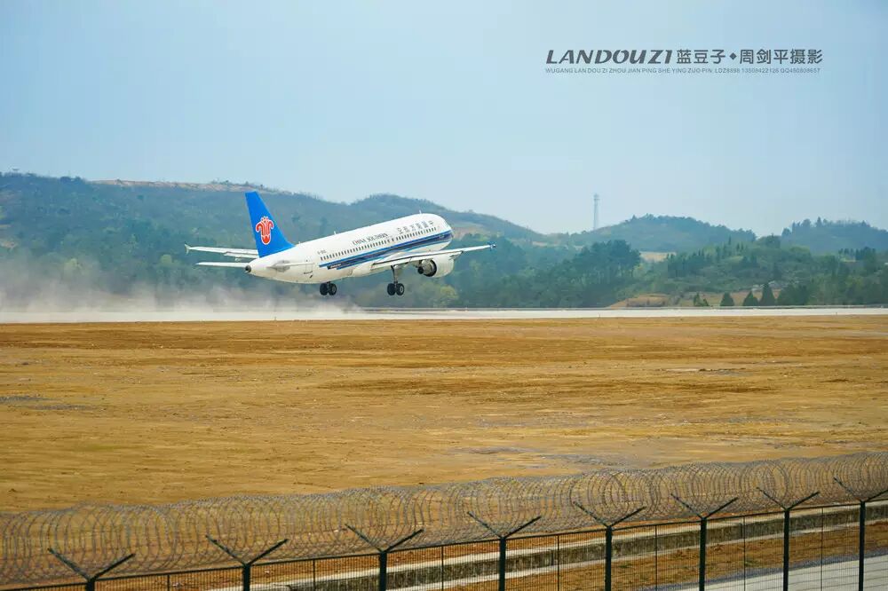 历史性时刻,飞机从武冈大地低空飞过。本图就是站在机场前面高速路上拍摄。