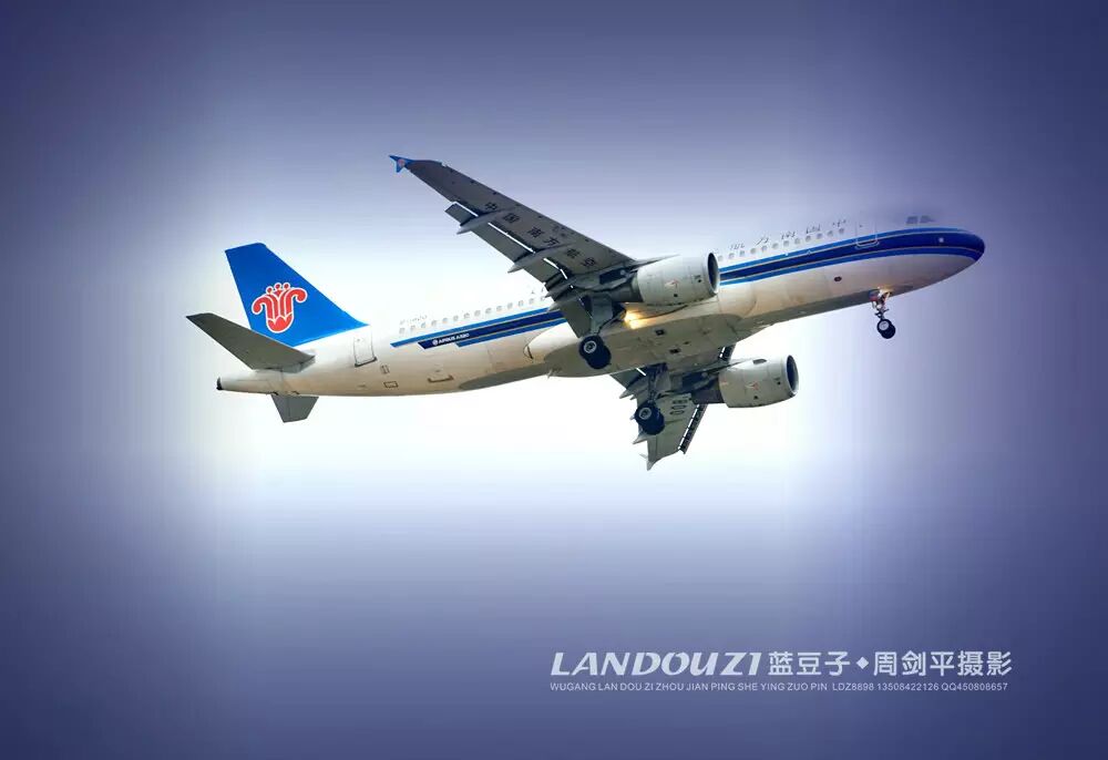 这是一架什么飞机呢?我用镜头把天上飞着的这飞机先拉近让大家先睹为快--空客A320。