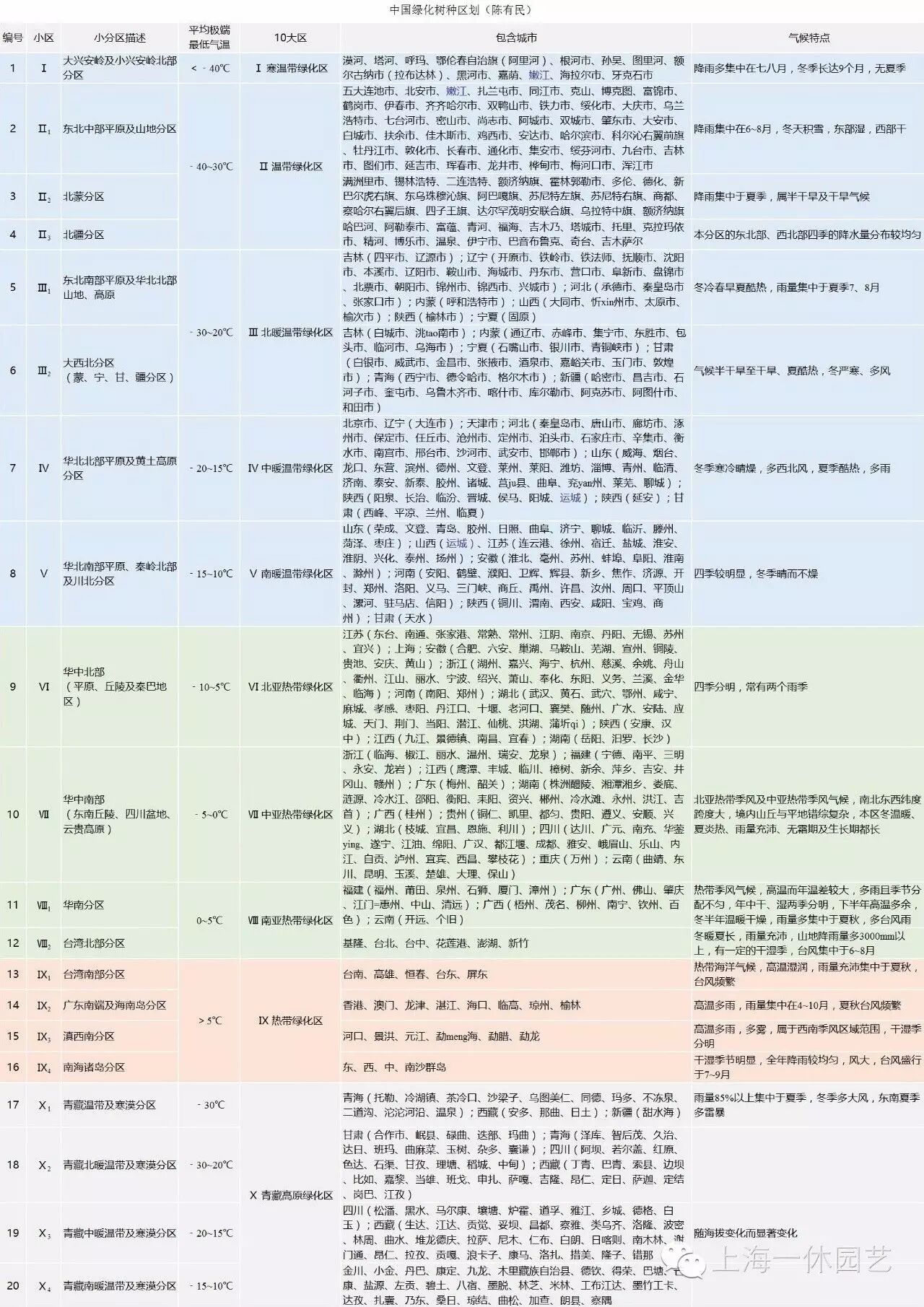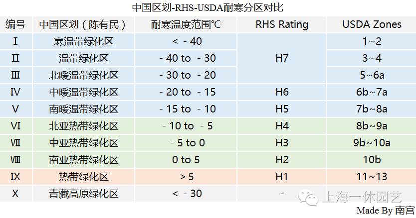 比如说魔都位于中国区划的Ⅵ区,对应RHS的H4及USDA的8b和9a区。