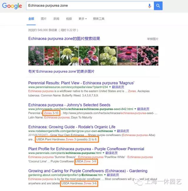 Google(或Bing/Baidu)搜索学名+zone,看到多条信息,集中在zone 3-9,打开其中一条(或多条)。