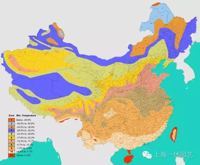 USDA旧版11区曾经出过一个中国的版本,汪远已经将其与中国县级行政区划图叠加,放大查找你所在的城市即可。