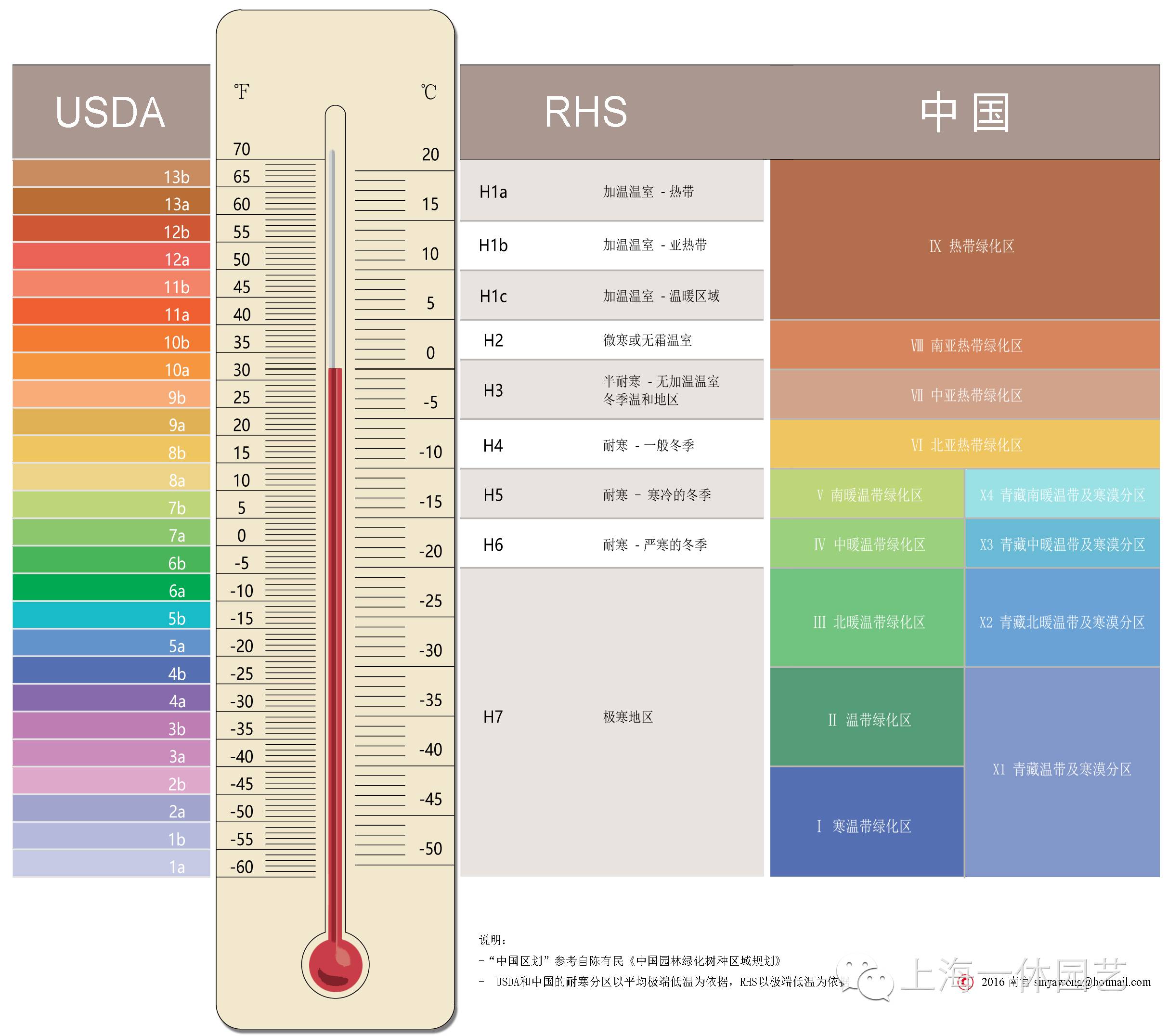 此外,笔者已经为大家将陈先生的中国区划、RHS及USDA最新的耐寒分区进行了整理,查找比对即可。(我真是大家的贴心小棉袄,傲娇脸~)