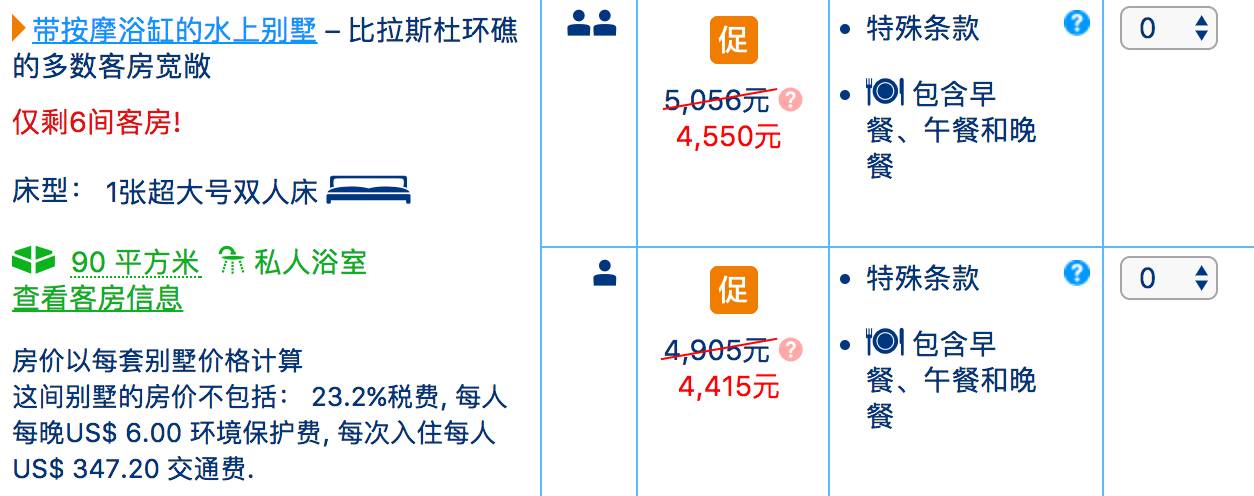 这款套餐,可以选择多地出发,往返含税的机票 + 马累 - 酒店的20分钟水飞接送 + 2晚沙屋和水屋 +一价全含的早中晚餐。如果是蜜月,还有额外的赠送。