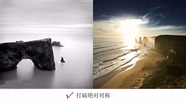 右图若再仔细考虑画面的明暗关系,质量会更高一层。而下图故意使用不规则来打破呆板的平衡。