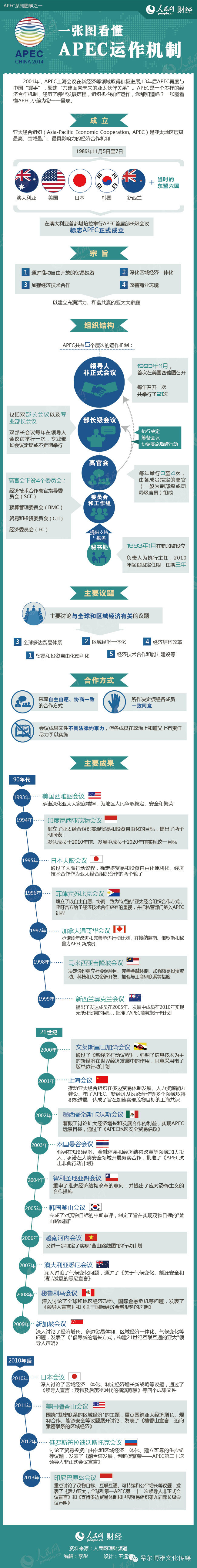 导语:2001年,APEC上海会议在新经济等领域取得积极进展,13年后APEC再度与中国“握手”,聚焦“共建面向未来的亚太伙伴关系”。APEC是一个怎样的经济合作机制,经历了哪些发展历程,组织机构如何运作,你都知道吗?