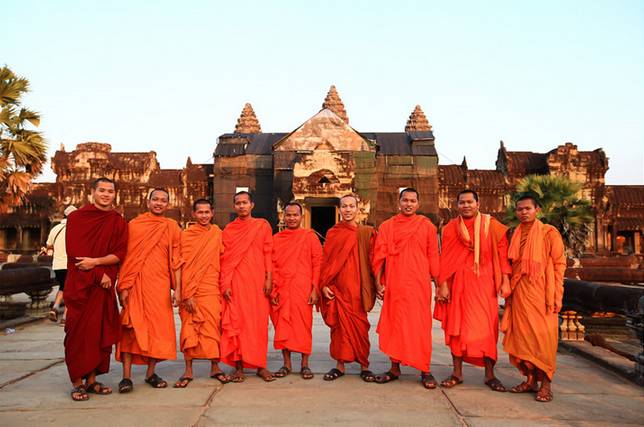 名胜:吴哥古迹(Angkor)位于暹粒省境内,距首都金边约240公里,是柬埔寨民族的象征,被誉为东方四大奇迹之一。现存吴哥古迹主要包括吴哥王城(大吴哥)和吴哥窟(小吴哥)。在公元9世纪至15世纪时,吴哥曾是吴哥窟、柬埔寨的王都。吴哥始建于公元802年,完成于1201年,前后历时400年。1431年暹罗军队入侵后,吴哥遭到了严重破坏,王朝被迫迁都金边。此后,吴哥被遗弃,逐渐淹没在丛林莽野之中,直到19世纪60年代一个叫亨利·穆奥的法国博物学家发现了吴哥古迹。吴哥古迹现存600多处,分布在面积45平方公里的森林里。大吴哥和小吴哥是它的主要组成部分,其中有许多精美的佛塔以及众多的石刻浮雕,蔚为壮观。这些佛塔全部用巨大的石块垒砌而成,有些石块重达8吨以上。佛塔刻有各种形态的雕像,有的高达数米,生动逼真。1992年,联合国教科文组织世界遗产委员会把整个吴哥古迹列为世界文化遗产。