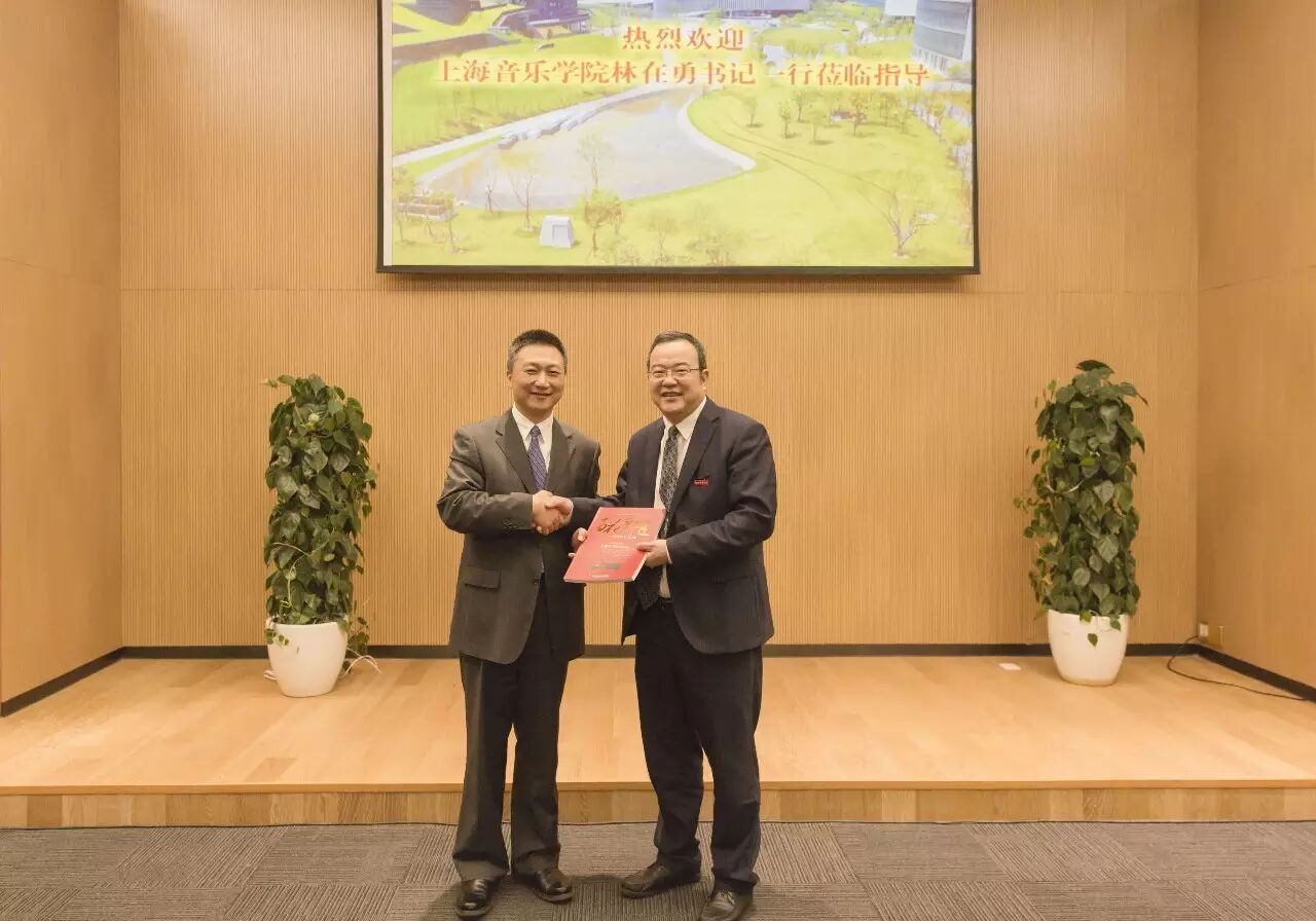 11月4日,上海音乐学院党委书记、院长林在勇带领党委副书记、副院长王瑞,副院长杨燕迪,总会计师张佳春及相关部门负责人一行11人专程来到我院进行考察指导,并与我院签署合作办学备忘录。学院党委书记褚子育,党委副书记、副院长张建国,党委副书记贾秀英,副院长张鸿雁,方培新,副院长杨九华及相关职能部门负责人参与了座谈交流。