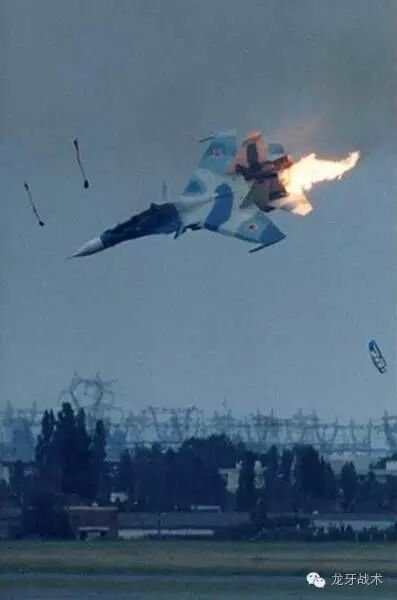 俄国米格29飞行表演,坠毁的最后一刻弹射逃生。