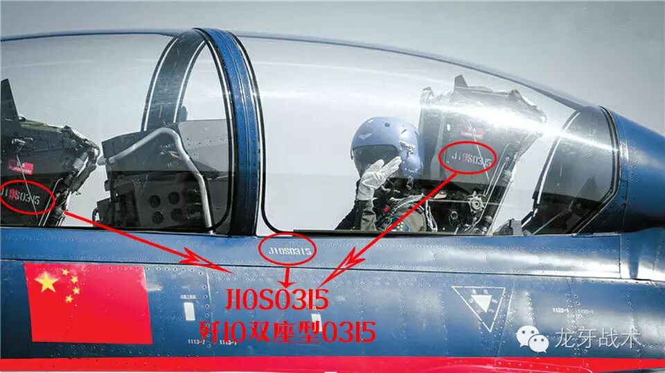 下图为放大的余旭在10号机后舱位置的图片,座舱边数字清晰显示为j10s型0315,照片显示余旭坐在后排位置。