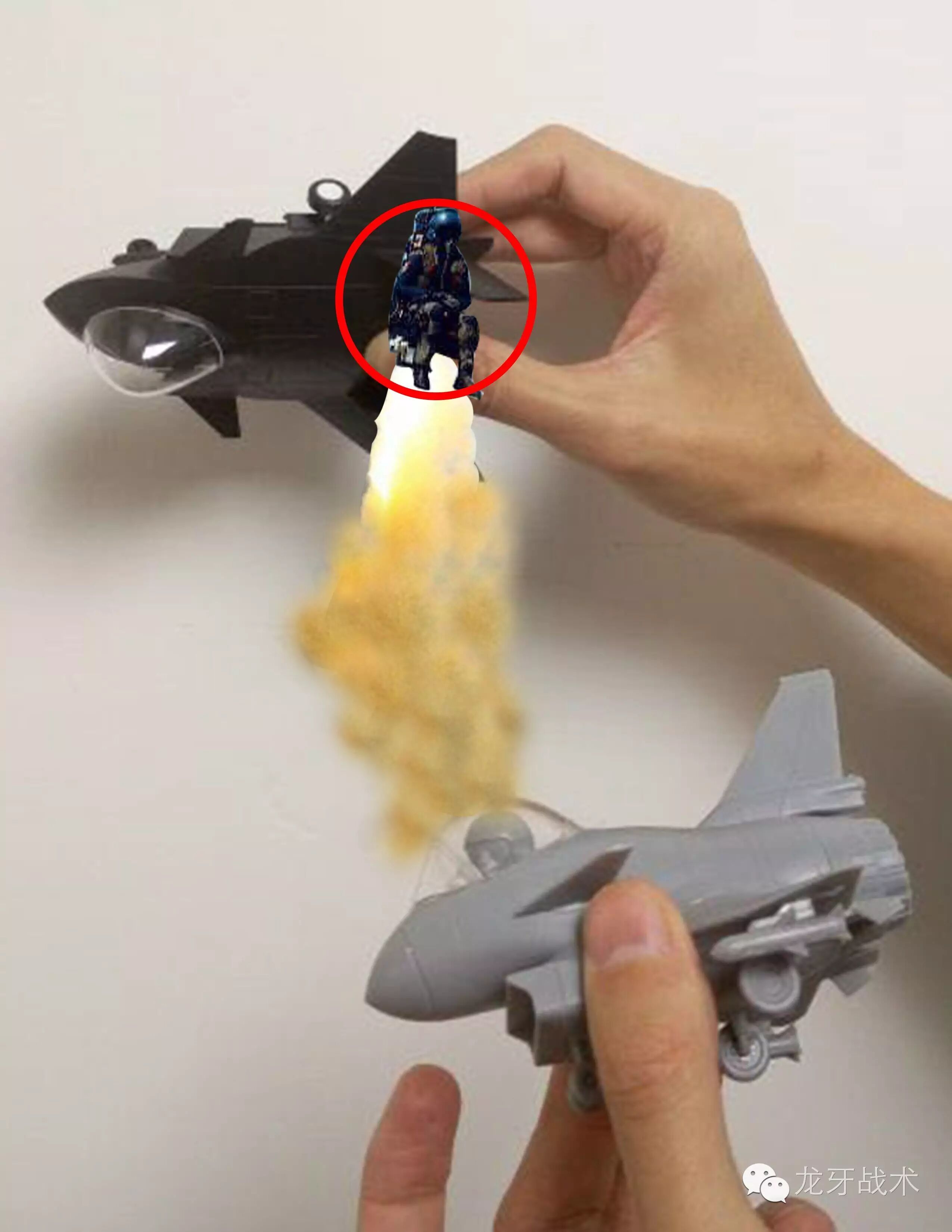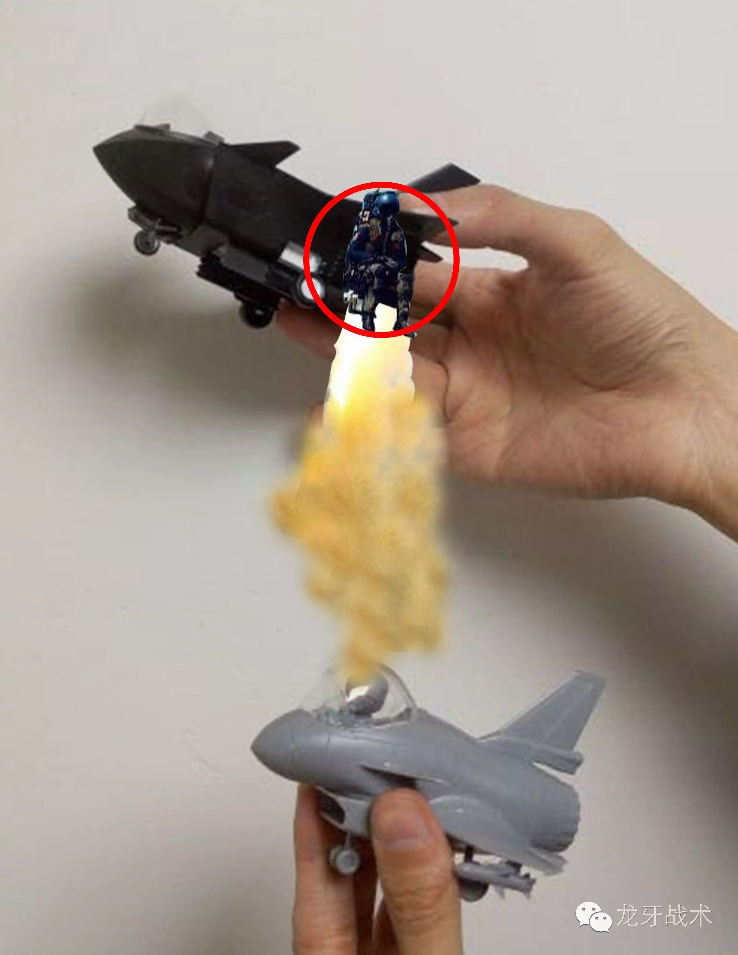 下图用手头两个飞机模型来假设演示一下事故发生时双机可能处于的位置,僚机应该处于余旭所在双座机座舱弹射位置相对上方50米以内,僚机的飞行姿态有可能是倒扣状态也可能是正常状态。