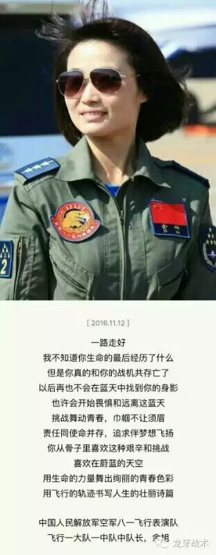 最后让我们对本次牺牲的烈士,优秀的女性战斗机飞行员余旭表示哀悼。