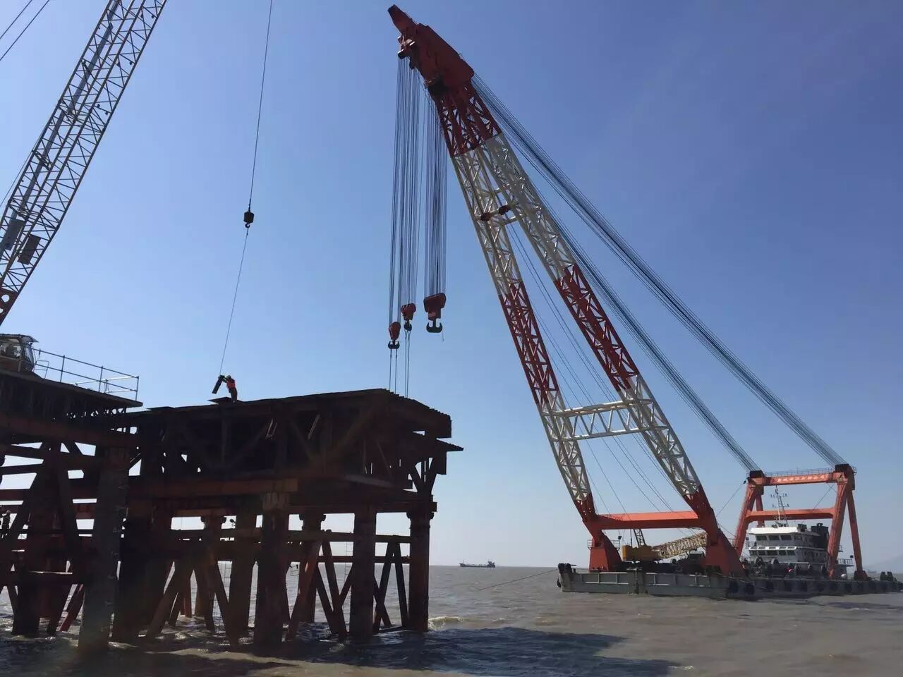 兴化湾海上风电样机试验风场项目施工平台分为履带吊平台和钻孔平台,均距离海平面最高达15米。这些施工平台主体结构钢管桩单根最短为40米,最长达到50米,最大吊重 170吨,共投入钢材1478吨。
