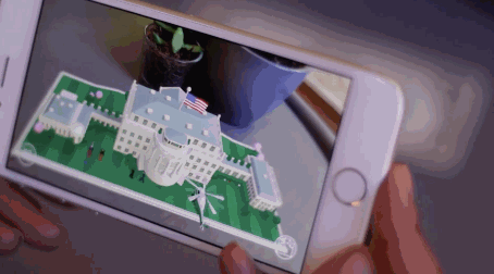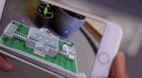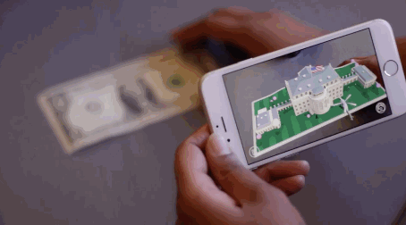 在应用程序识别了一美元后,就会在乔治华盛顿总统的周围建造扩展出一个白宫的AR模型,科技感十足!
