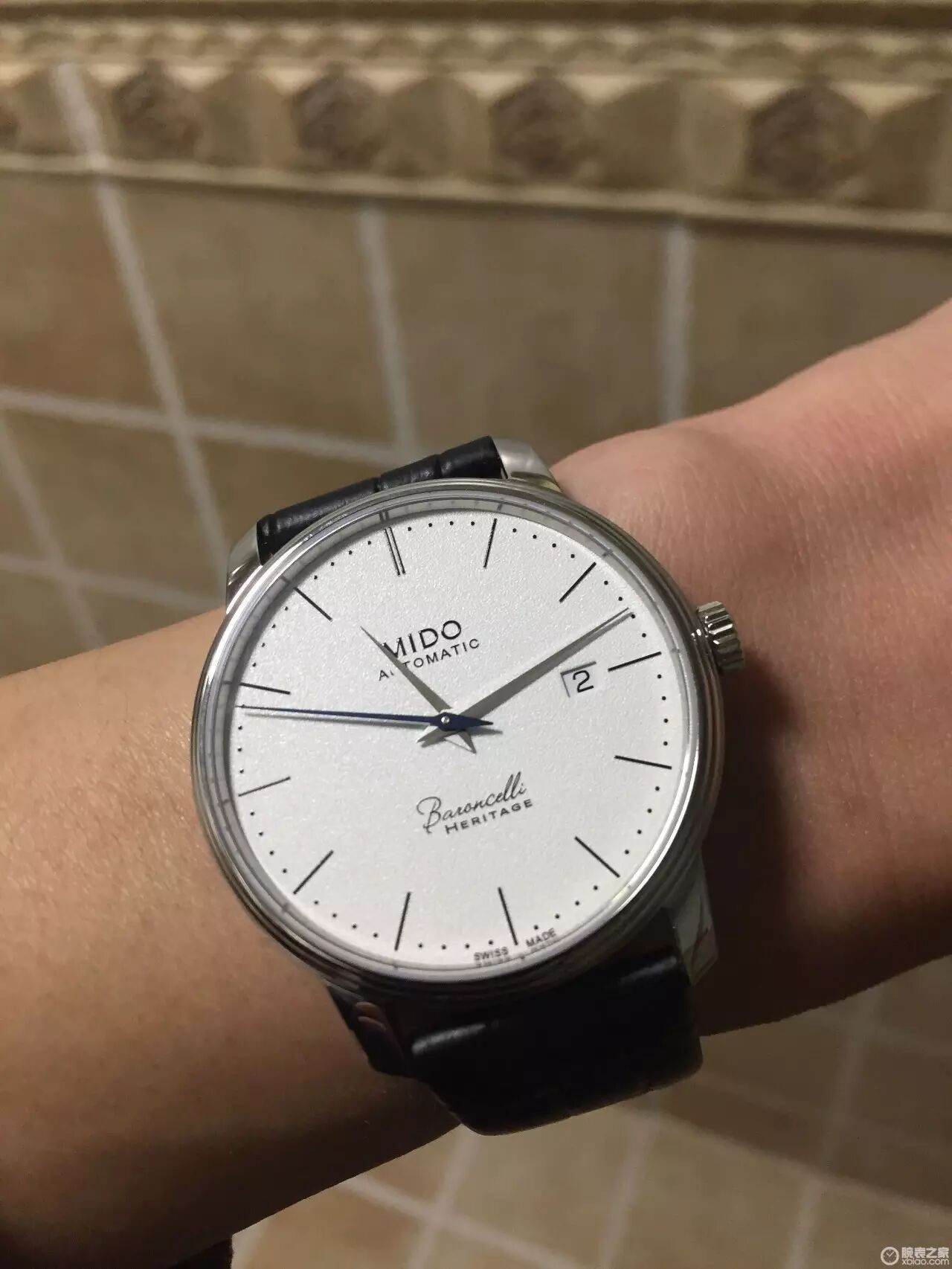 兴奋过后,只能望着理想和现实之间隔着的自己干瘪的钱包这个无法逾越的鸿沟叹气。最后在“亲民”中看到了MIDO这个并不好听的名字,在这个并不好听的名字中看到了贝伦赛丽这个美丽的系列,在这个系列中发现了你在帖子前面看到的40周年典藏版,眼缘这玩意儿,还真是说不清,拉拉杂杂说了些莫名其妙的话,估计你也烦了,看图,顺便请各位给掌掌眼,看看是正品么