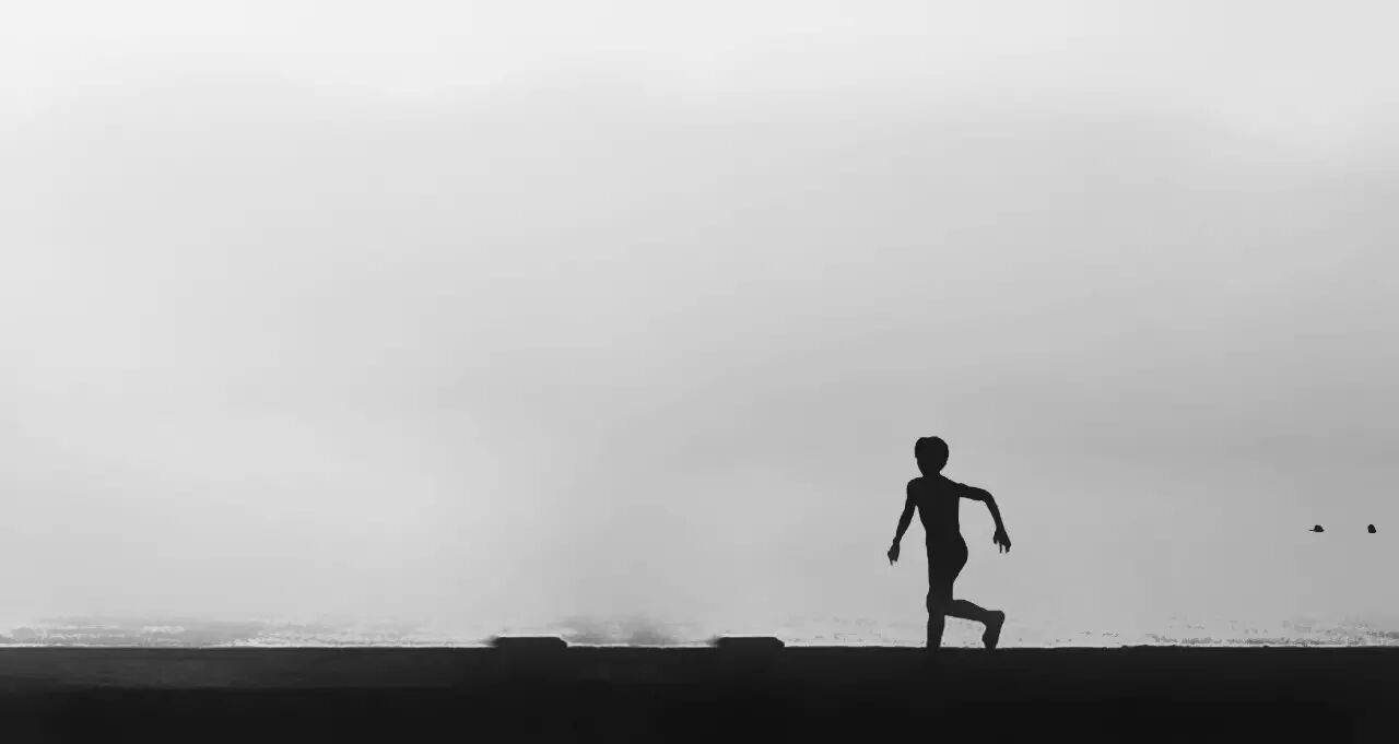 在堤坝奔跑的小男孩,距离隔得太远,像素达不到。