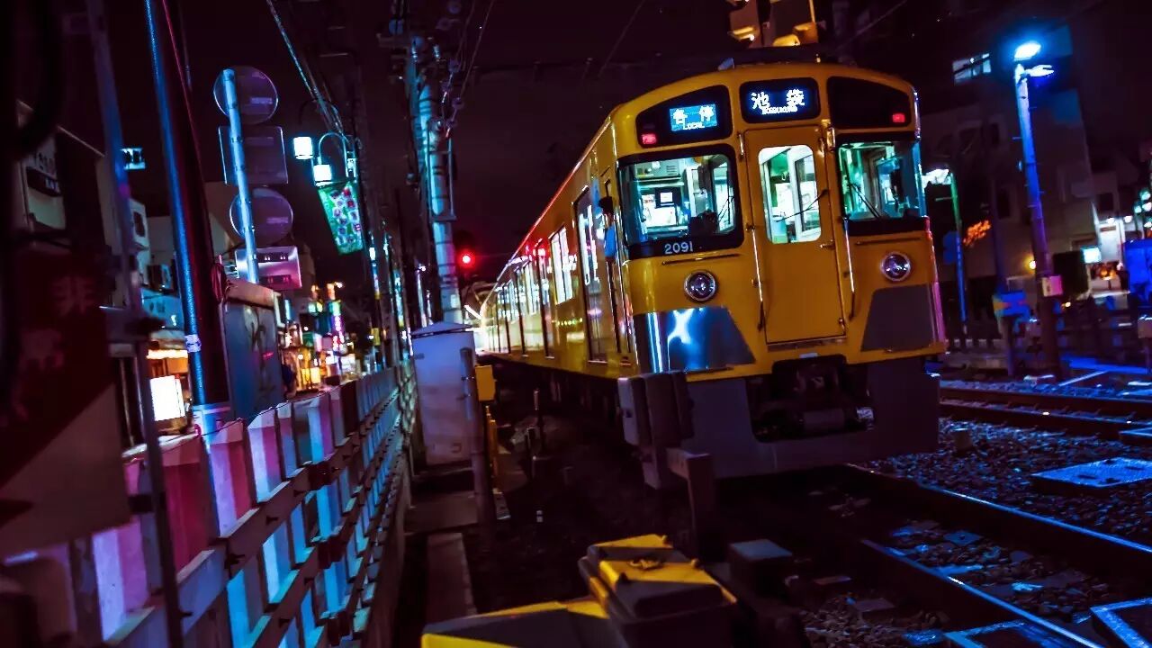 夜里走在江古田车站的路上蹲到了一列黄色的电车。