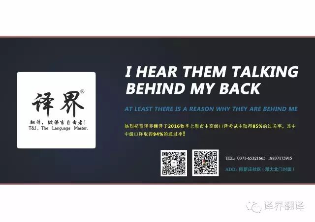 相关解释权,由译界独有!特别提醒,译界并未授权任何机构,代为招生或者培训,侵者必究!