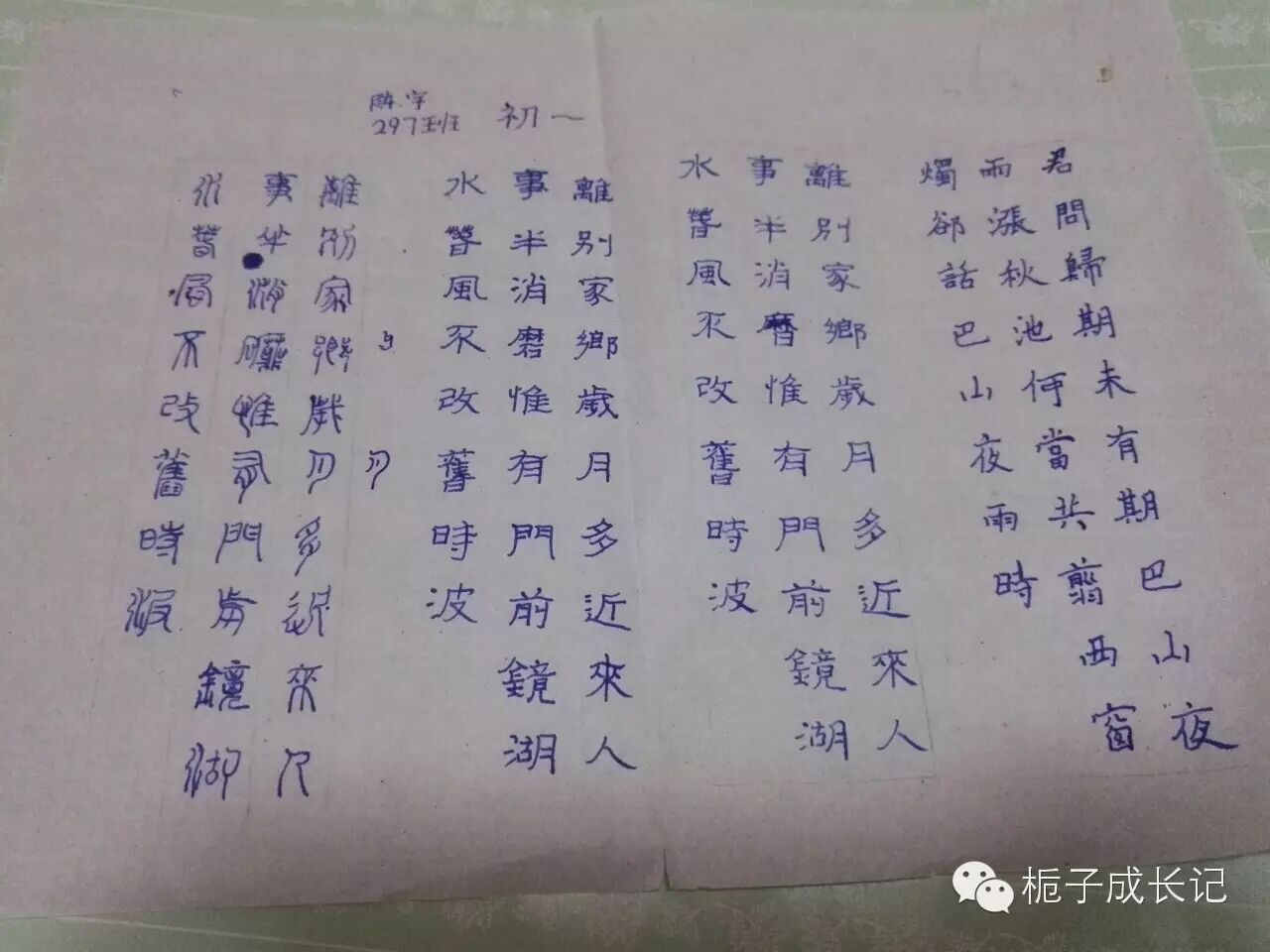 初一时有趣的书法课,大多数写的都是隶书吧,好像大概是的,偶尔写草书。