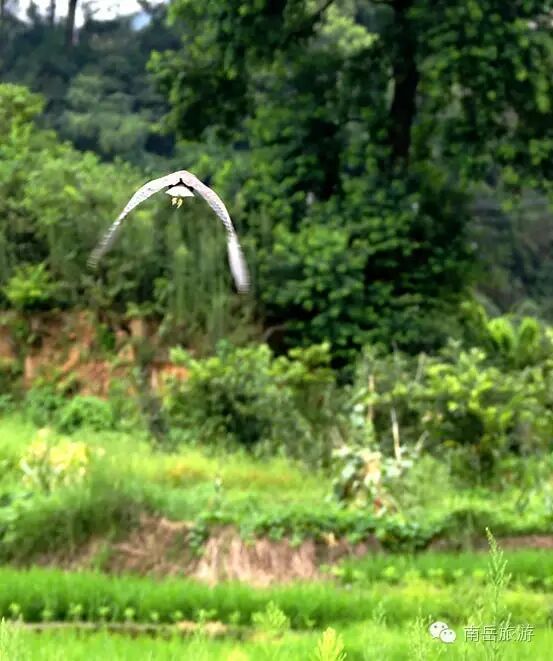 快到朱陵宫的时候,惊起田里几只白鹤,当头一只尤大,飞得也最快最高最远。后来听人说这是凤头鹰,国家二级重点保护野生动物。