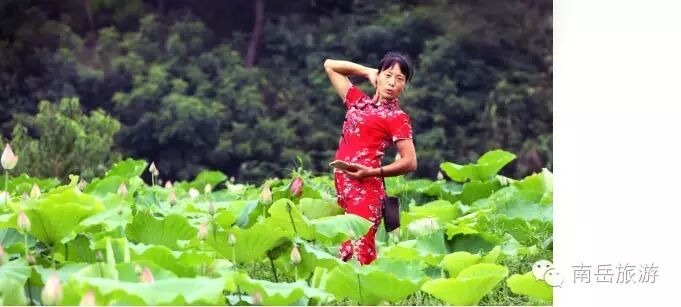 走近荷田,果不出所料,处处都是想和荷花合影的游客们,文艺、甜美、复古等各种风格的都有。而最让我们乐不可支的是在荷田里遇见的守莲人。