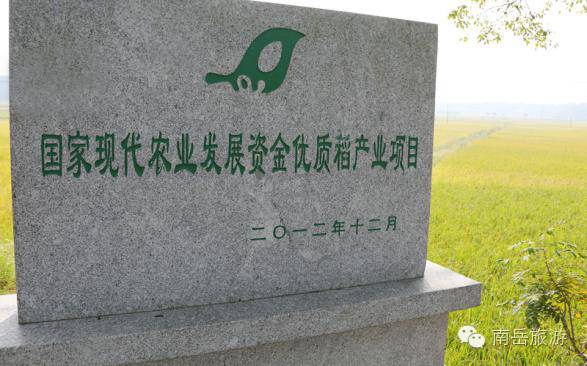 出了枣园,没走多远,一大片金黄的稻田直冲入眼,带着浓浓的秋意和丰收的喜悦,让人自然而然地感到心里满满的,踏踏实实。稻田外立有“国家现代农业发展资金优质稻产业项目”的石碑。