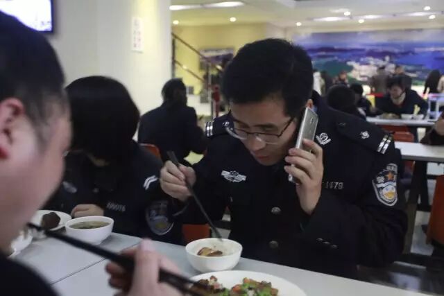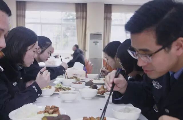 中午,他们换班轮流吃饭,忙碌的一上午终于短暂的卸下耳麦,食堂里也能听到接警员们的欢声笑语。