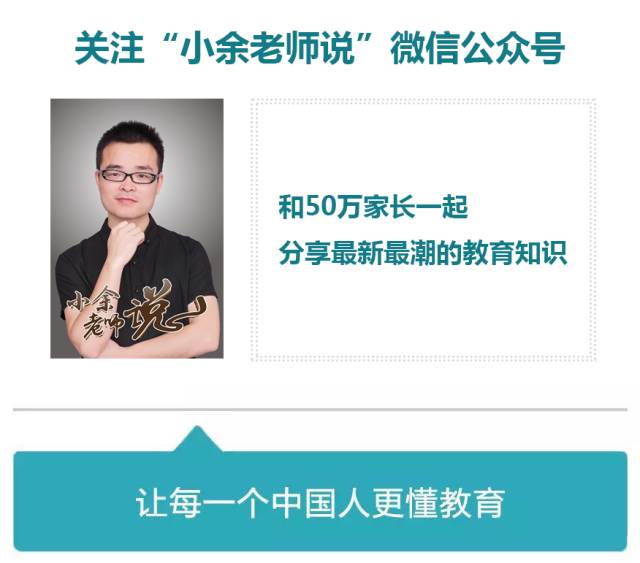 如果你想了解更多的家庭教育知识,欢迎关注“小余老师说”微信公众号,这里是全国最大的家庭教育知识分享社群,已经有超过50万中国家长在这里找到了各种教育难题的解决方案。