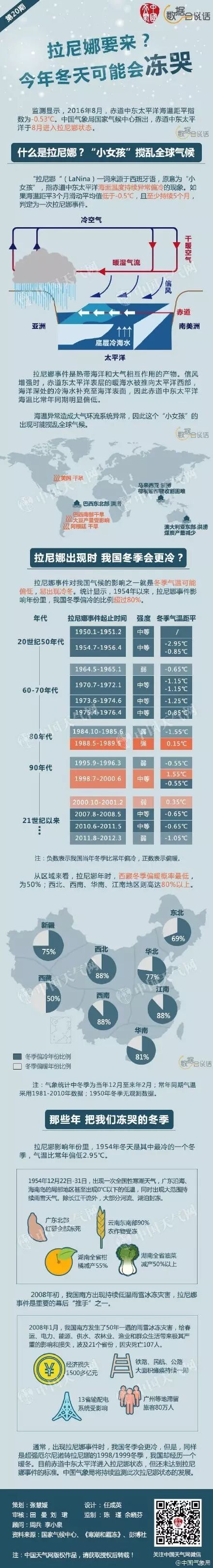 赤道中东太平洋已于8月进入拉尼娜状态。拉尼娜的出现将搅乱全球气候,对我国气候的影响之一就是冬季可能会更冷。