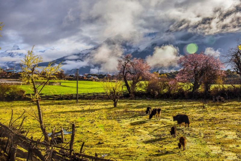波密县距离松宗大约43公里,松宗镇就位于318国道边上,松宗镇的桃花盛开时,一般周围的雪山还未融雪,可拍摄到大片的桃花映衬在雪山下的美景,建议松宗镇的桃花拍摄时间可选择在清晨和傍晚。