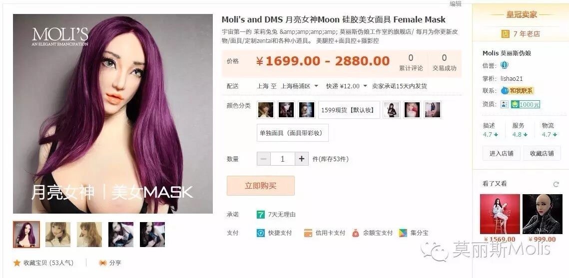 她有手工的植毛和令人垂涎的唇色。虽然不那么像名取,但是这比起更像名取而言高到不知道哪里去了。¥1980的价格对于新手而言虽然显得稍微Hard,但是参考femask的价格,并无不妥之处。