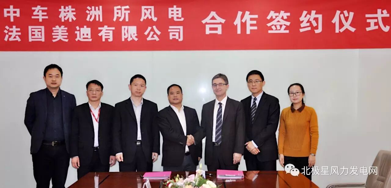 2017年2月17日,中国中车旗下株洲所风电与法国美迪公司在湖南株洲签订项目合作协议,双方代表中车株洲所风电总经理彭华文、法国美迪CEO Didier DELAUNAY在协议上签字。这是继2016年11月底中车株洲所签约国家气候中心后的又一项重要签约。