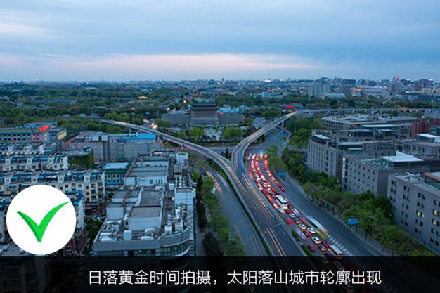 5一切就绪就等最佳的拍摄时间,拍摄的最佳时机也不是固定的,这个是根据季节来决定的。冬天略早,夏季时间更长,傍晚建筑轮廓光亮起,这时候天色还处于比较亮的状态。最加的时机是在建筑轮廓光与自然光的光比在1:1的情况下拍摄,两边的光较为平衡,这样拍摄测光时不会有较大的测光问题,拍摄出画面的亮度也均衡。天色依旧泛蓝,画面颜色也丰富一些,如果等到天黑再拍摄,就错过了最佳时机了,更直白点就是应该控制在太阳落山前后的10-20分钟之间。