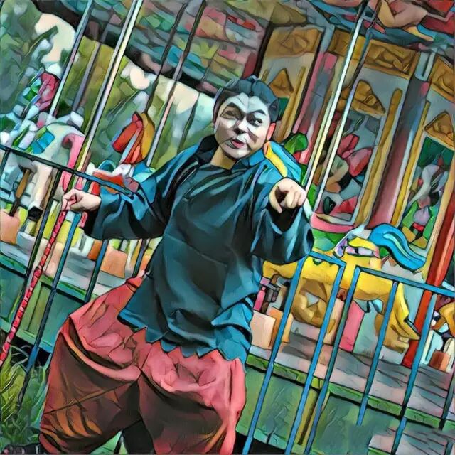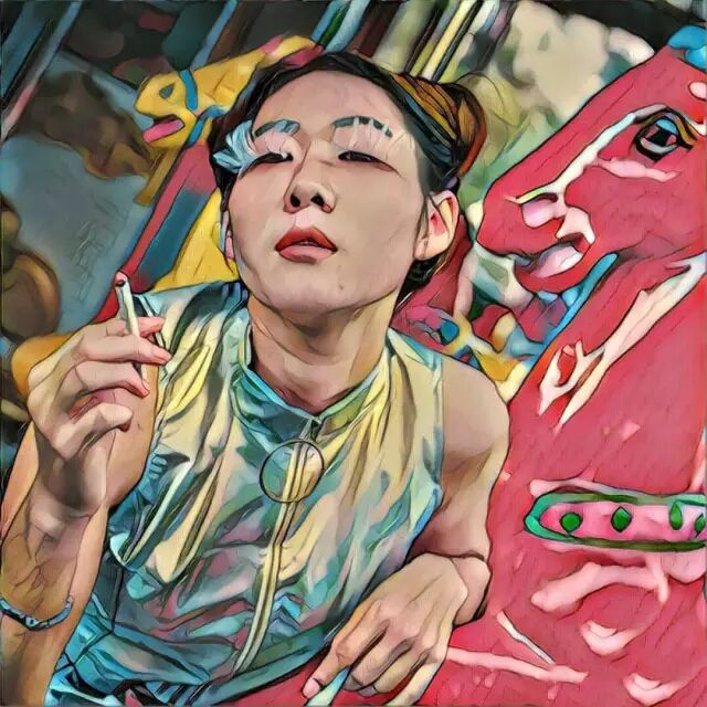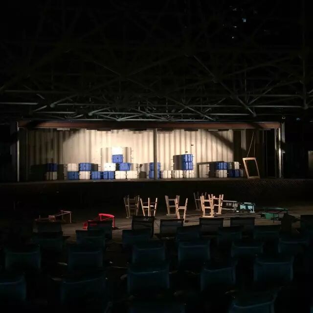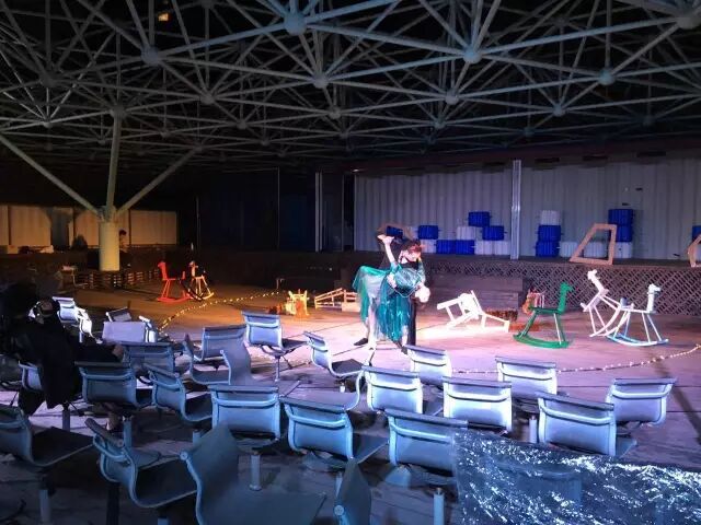 五颜六色的木马,蓝白相间的塑料箱子,微弱闪烁的星星灯,大幅肖像喷绘,波点气球,迷幻的灯光,还有电子爵士乐,整出戏在箱剧场开放的舞台上,显得那么离经叛道和荒诞离奇。