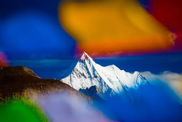 央迈勇,藏语意为“文殊菩萨”,为“三怙主”雪山的南峰,海拔高度为5958米。文殊菩萨在中是智慧的化身。
