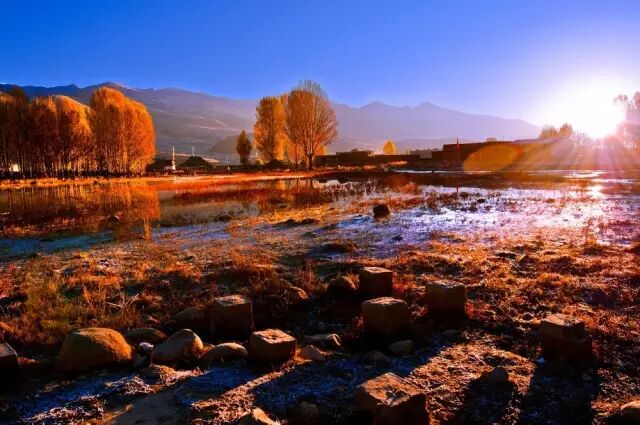 村子位于山间台地上,峡谷中出现这样的台地让人有种恍若隔世的感觉。四周是起伏着的苍凉群山,在蓝色天空映衬下,山峦的轮廓青黑晶亮,村子共28户人家。