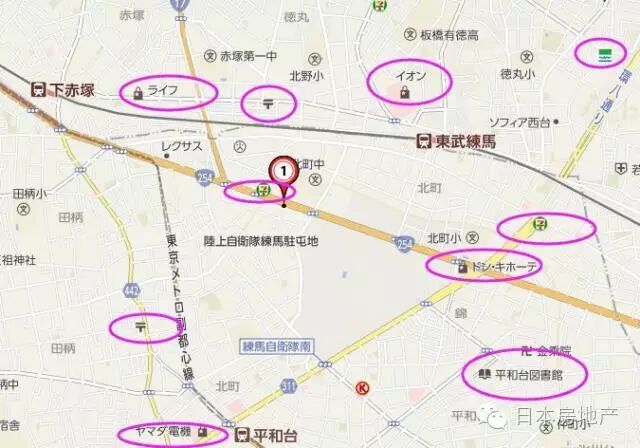 「まいばすけっと東武練馬駅南口店」 719m 徒步8分钟「スーパーみらべる東武練馬店」 750m 徒步9分钟「セブンイレブン板橋徳丸4丁目店」 1020m 徒步12分钟「ファミリーマート板橋四葉店」 1400m 徒步16分钟「板橋区立高島平図書館」 2830m 徒步34分钟