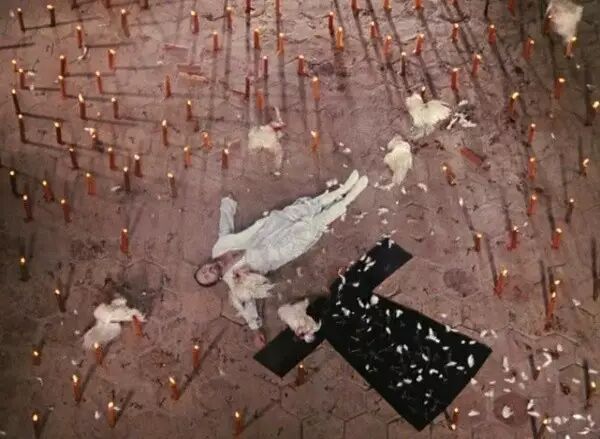 回至《石榴的颜色》,不得不提的还有那一场诡异的洗礼。 借先辈之手,帕拉杰诺夫将圣水施洗于一具 “木乃伊”,一如施洗于“死亡”,而非“新生”。或许,对诗人而言,死亡并不是一件可怕的事,更只是归于尘土的稀松平常。 这一刻,帕拉杰诺夫对于生死的哲学念想也悄然隐现。 于他而言,死亡与新生的距离,唯独只是一场洗礼罢了,就像日夜轮转的间隙,静静睡了一大觉。