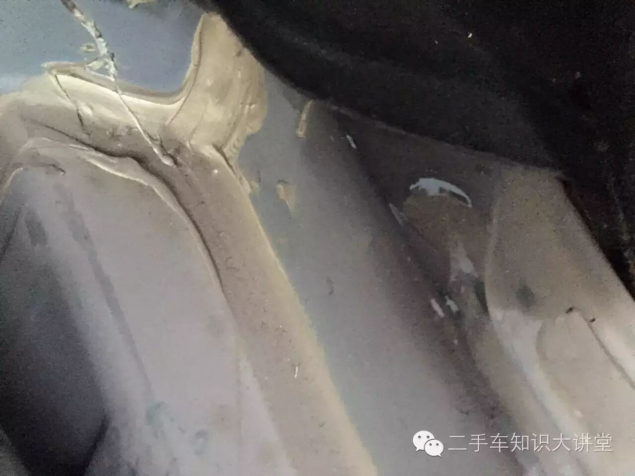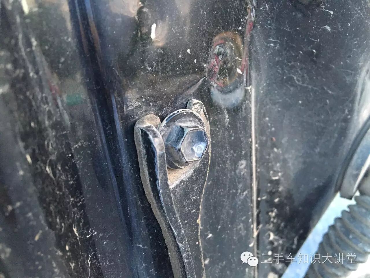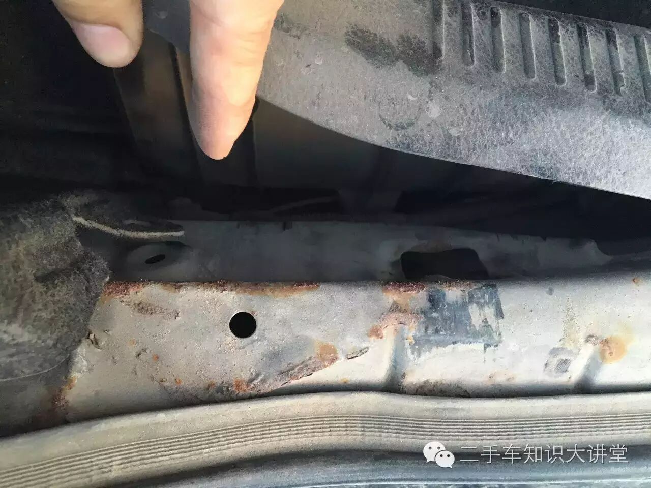 凡是在二手车的骨架上看到有任何不平整和生锈痕迹,看都不用看,那地方绝对撞过。
