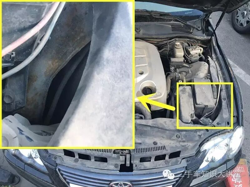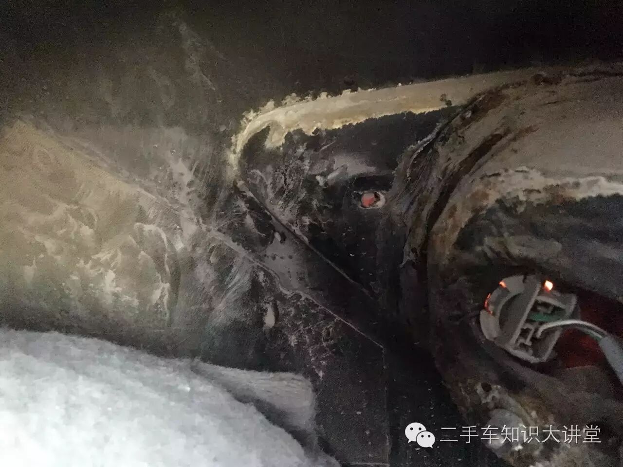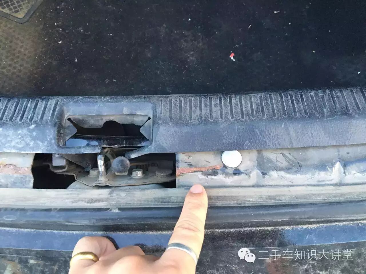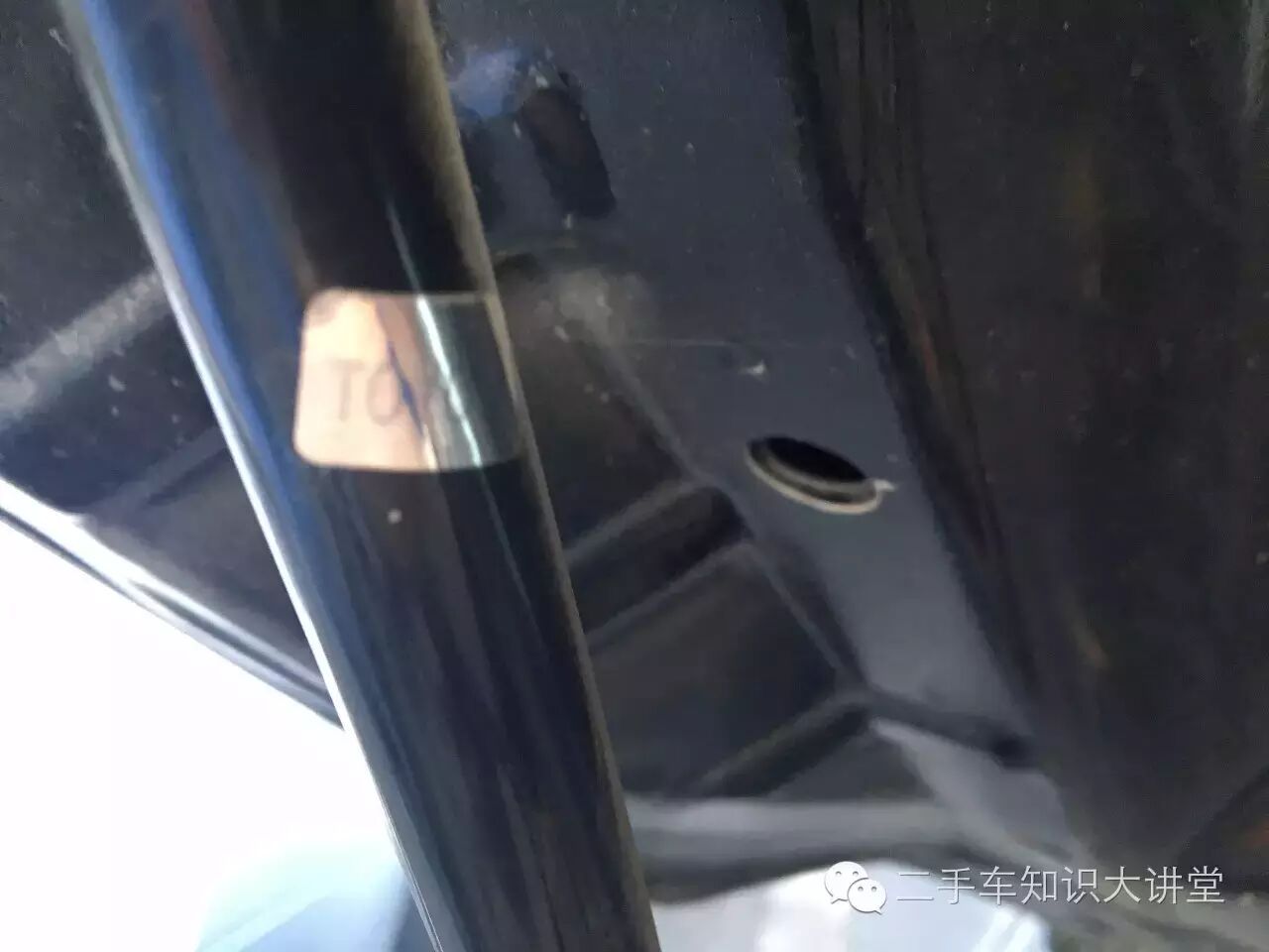 凡是在二手车的骨架上看到有任何不平整和生锈痕迹,看都不用看,那地方绝对撞过。