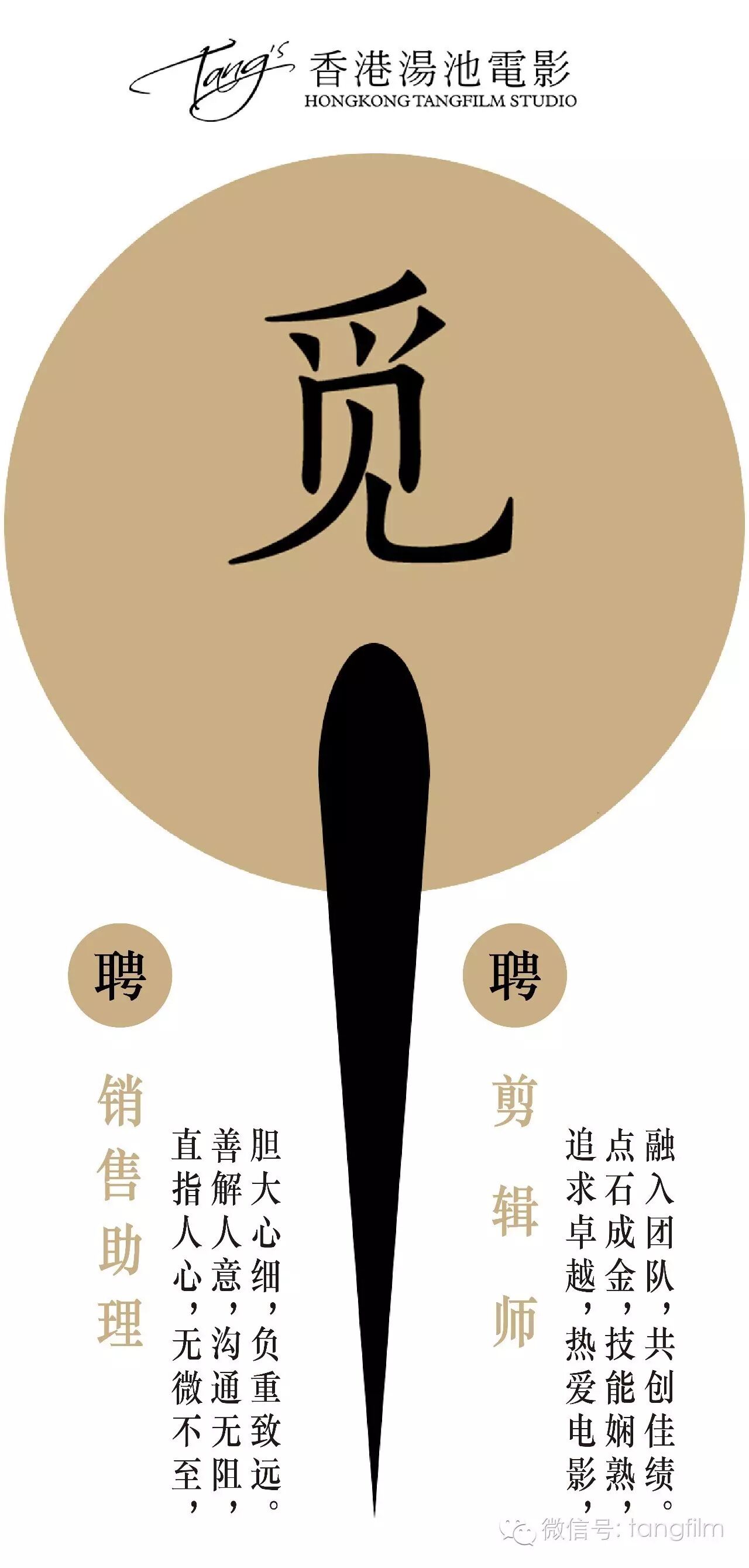 这里有最文艺的环境,最愉快的氛围,最具幸福感的工作,最自豪的影像作品,最具成长的空间。与大师一起,展望未来。请将个人简历(含应聘职位、薪资要求、相关作品链接及生活照一张)发送至14917189@qq.com,我们等待你的到来。