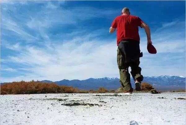 如下图所示,这也是一张低视角的构图画面。这样的画面让红色的人物完全映衬在蓝色的天空中,使色彩更加鲜明,而够低的视角也让对象前方不必要的杂物被排除在画面之外,让红衣人物处于黄金分割在线成为视觉中心,使得整个画面更加简洁。