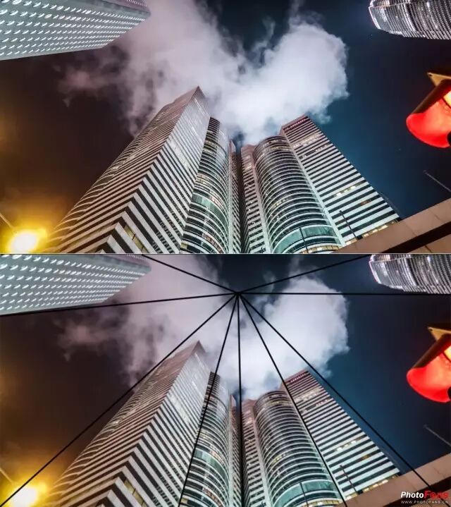 适用对象:常用于拍摄线条明晰的城市建筑。或其他由垂直线条构成的主体。
